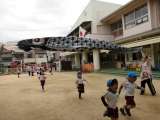 大きなこいのぼりが泳ぐ下で、子どもたちがこいのばりまで、かけっこをして遊びました...