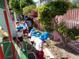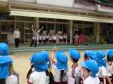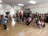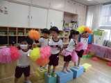 鶴見緑地公園で予定していたふれあい園外保育は雨天のため、鯰江幼稚園内で遊ぶことに...