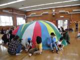 みんなで体操をしたり、PTA学級委員さんが考えてくださったフープくぐりをしたり、...
