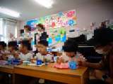 6、7月に生まれたお友達の誕生会をしました。 始まる前に園長室で誕生バッチをつけ...