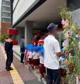 5歳児が七夕飾りを届けに消防署に行きました。消防士さんたちが笑顔で出迎えてくださ...