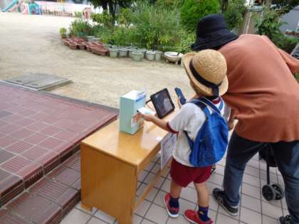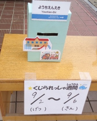 登園時に切符を箱に入れます。「先生くじら列車乗れたよ」と嬉しそうに話してくれる子どもや、保護者からも「自分から早く寝てくれます」と言った声もありました。