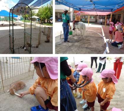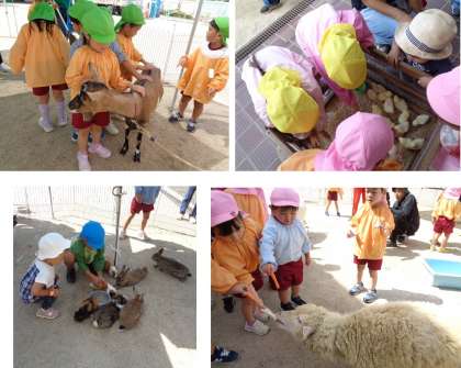 ポニーの背中に乗せてもらったり、ウサギやヒヨコ、モルモットなどを抱っこしたり、ヒツジやヤギなどにご飯をあげたり、たくさんの経験をすることができました。