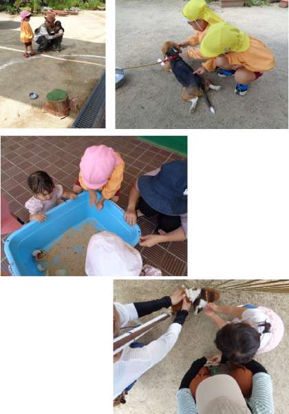 触るのにドキドキした様子を見た、5歳児のお兄さんお姉さんが「抱っこしてるから触ってみる?」と優しく声を掛ける姿もありました。