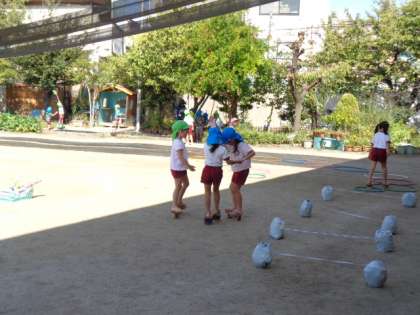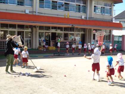 その後の戸外遊びでは、玉入れをしたり、サーキットをしたりしました。