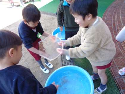 寒さが一段と増す今日は、昨日から桶に張った水が氷るほどでした。
