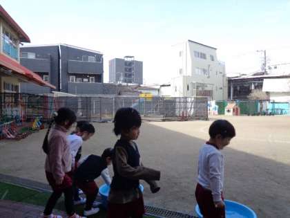 なかよしの時間には、雪が降り子ども達が園庭へ見に出てきました。