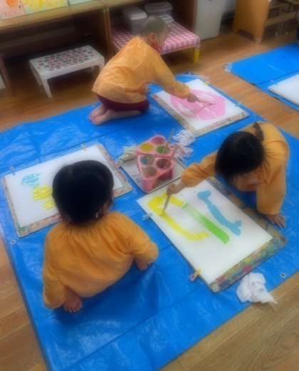 初めての絵の具遊び