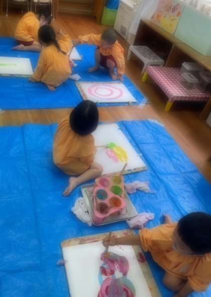 4歳児が初めて絵の具で絵をかきました。