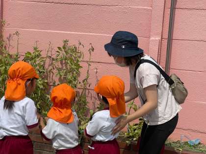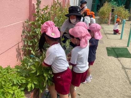 土の中の根を見て「髪の毛みたい」「葉っぱがカサカサになってる」など、気づいたことを先生や友達に知らせていました。直接体験を通しての気付きがありました。