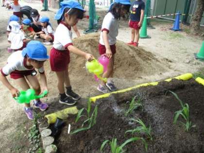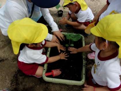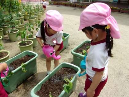 今幼稚園では、各学年ごとにいろいろな野菜の栽培を行っています。