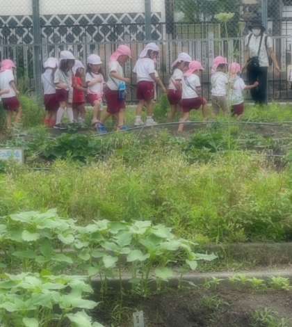 広い校庭や畑を見たり、初めての遊具で遊んだりしました。