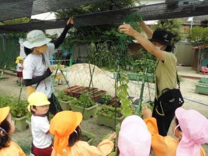 大きくなってね 公開日 2022/07/13 更新日 2022/07/13 お知らせ ゴーヤやアサガオ、フウセンカズラのツルが伸びてきました。夏には涼しいトンネルができるように、3・4歳児がアーチにネットをかけました。 どんな花が咲くかな? これからの生長が楽しみですね。 いいね(0)