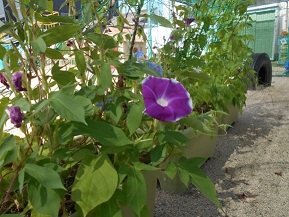 美しいアサガオが咲き、アーチが賑やかになってきました。