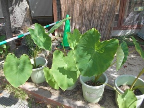 1学期に植えたサトイモの葉も大きくなってきましたよ。