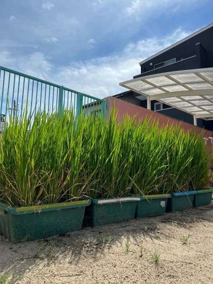 6月にみんなで田作りや田植えをしたイネが、ぐんぐん育ってきました。