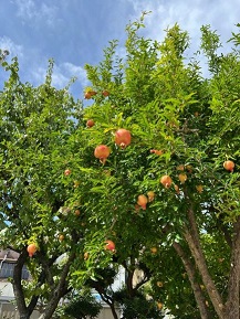 ザクロの実も木の枝にたわわに実ってきましたよ。