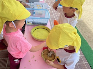 小さな手で、一粒、一粒、「これ、全部取るねん」「触ってみて、ツルツルやで」と、根気よく取り出していました。
