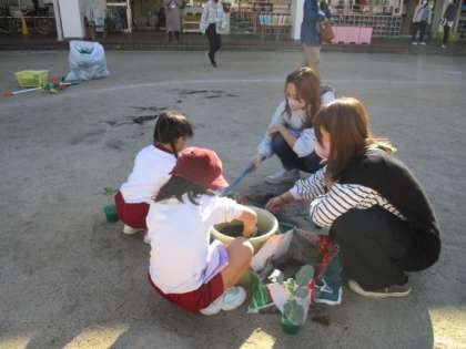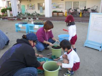 今日は、4歳児が登園時にお家の方一緒にブロッコリーの苗を植えました。
