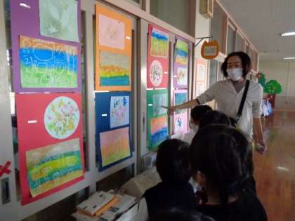 今日は、それぞれのクラスの作品を見に行きました。