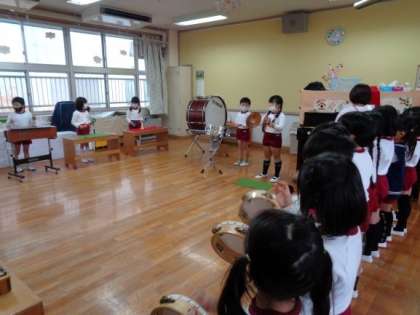 楽器遊び 公開日 2022/11/29 更新日 2022/11/29 お知らせ 各クラスからたくさんの音が聞こえ、のぞきに行くと楽器遊びを楽しんでいました。 色々な曲に合わせて楽器を鳴らしたり、どうしたら綺麗に音が聞こえるかを考えたりしていました。 いいね(0)
