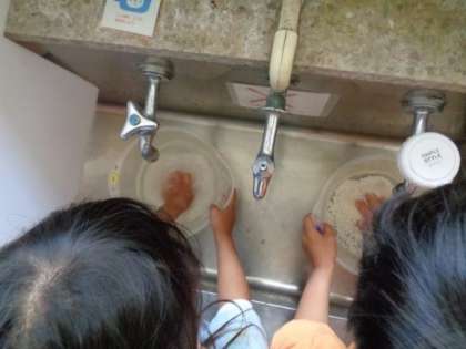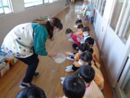 5歳児がもち米研ぎをしました。