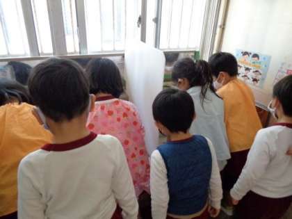 3・4歳児は、研いでいるところを見に行きました。