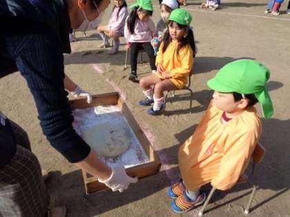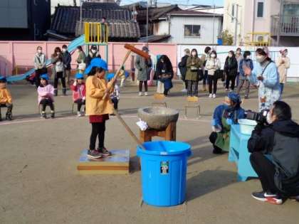 「よいしょ!」の掛け声に合わせて一所懸命にもちをつきました。