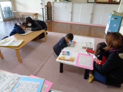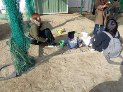カレンダーに絵をかいたり、冬の塗り絵をしたり、砂場や遊具で遊んだりしました。