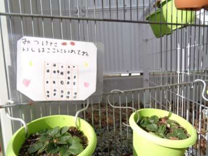 拾った石をどこに集めると安全か、みんなが分かるように、貼り紙をつくってくれました。