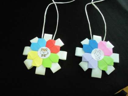 色々な形の折り紙を自分で選んでノリで貼り、顔をかきました。
