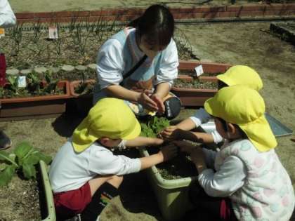 小さなカブに「可愛い」「ひげ(根っこ)面白い」「ツルツルしてるね」と見たり、触れたり楽しむことができました。