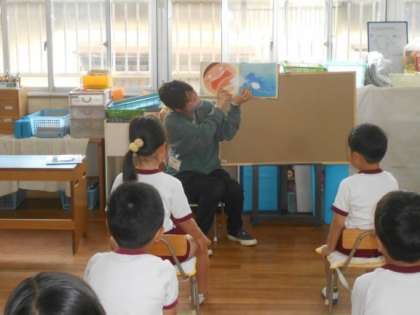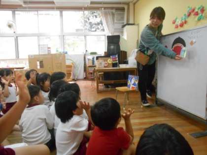 『がんばれ はぶらしハーマン』の絵本からどうして虫歯ができるのかを考えました。子ども達は「歯をみがかなかったから」「夜遅くまでおやつを食べていたから」など意見がでました。