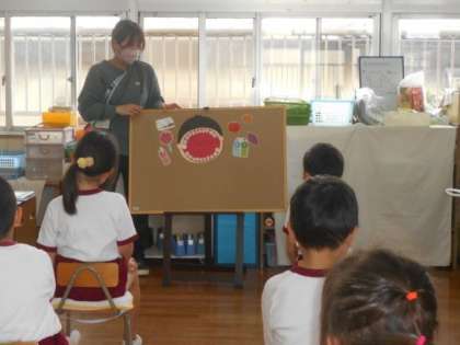歯みがきは、ご飯を食べた後だけではなく、おやつを食べた後もみがいた方がいいことを伝えました。
