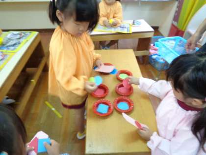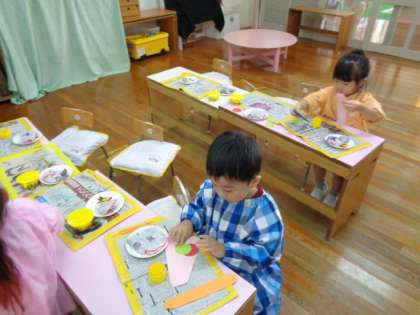 好きな色を選んで体をつくったり、ペンを使って羽や目に模様をかいたりしました。