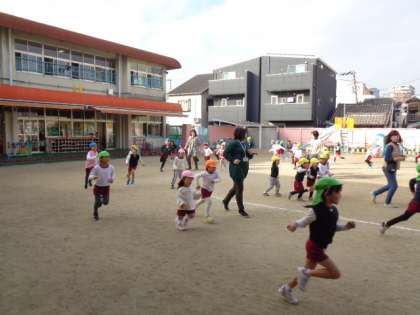 準備体操をしたり、ウォーミングアップで歩いたりした後自分たちのペースで走ります。
