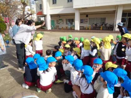子どもたちは、音に気付くと遊びをやめて、マイク放送をよく聞き、近くにいる先生の所に安全に集まりました。