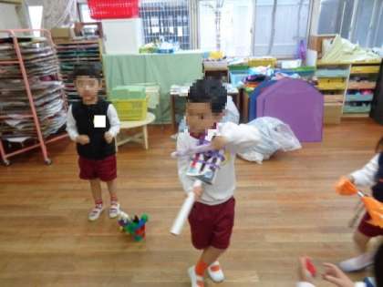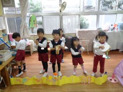先日の誕生会で教師が「山の音楽家」の歌に合わせて楽器を演奏したことで、子ども達が「自分も楽器をやってみたい!」と意欲がわきました。