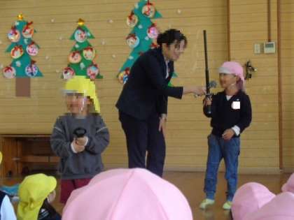 避難訓練をしました(不審者対応) 公開日 2025/12/11 更新日 2025/12/11 お知らせ 城東警察の方に来ていただき、不審者が来園した想定で避難訓練を行いました。警察官の方に不審者役をしていただきました。 今年度2回目の不審者対応避難訓練だったため、前回の反省を生かして素早く避難することができました。 警察の方からは、今日の避難訓練を踏まえてお話をしていただき、警棒や手錠も見せていただきました。 子ども達が安全に園生活を送れるよう、今後も定期的に避難訓練を行います。 いいね(0)