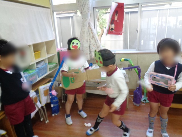 ロックンロール イエーイ! 公開日 2025/12/18 更新日 2025/12/18 お知らせ 歌って踊るのが大好きな4歳児の子ども達。今日はロックンロールの曲調で、手づくりギターをかき鳴らして歌い踊っていました。とてもかっこいいですね。 いいね(3)