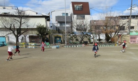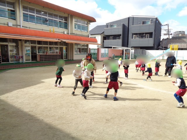 今日は節分です。園庭で豆まきをしました。