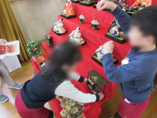 5歳児ゆり組の子ども達が、ひな人形を飾りました。