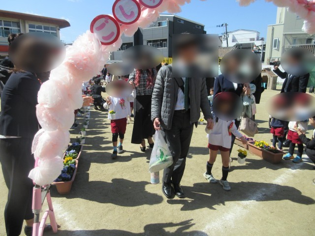 式の終了後は、在園児がお見送りをしました。