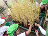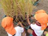 今日は、先週水抜きしたイネの収穫をしました。 各クラスイネを大切にしながら収穫...