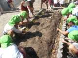 5歳児は、空いている畑に何を植えようか相談し、カブの種をまくことにしました。 先...