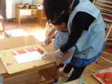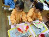 3歳児ひよこ組は、デカルコマニーをしました。「わー綺麗」「面白いね」など、友達や...