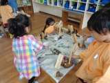 5歳児が色々な木材やドングリなどを使って思い思いの作品をつくっています。 「これ...