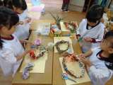 サツマイモ掘りの時、お手伝いの保護者の方がたくさんのツルリースをつくってください...