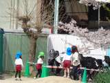 5歳児ゆり組、あやめ組が園庭を探検していました。 4歳児の時に植えたチューリッ...