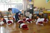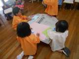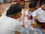 4歳児さくら組のお部屋では、進級児と新入児が一緒に積み木を並べたり、積み重ねたり...